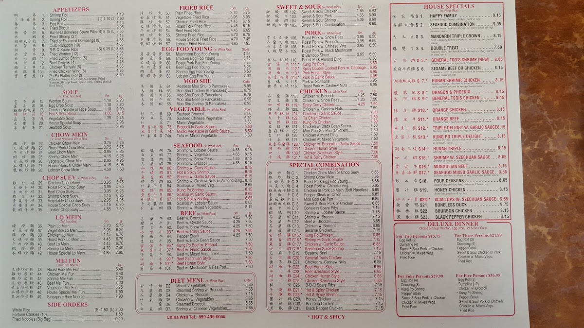China Wall Menu
